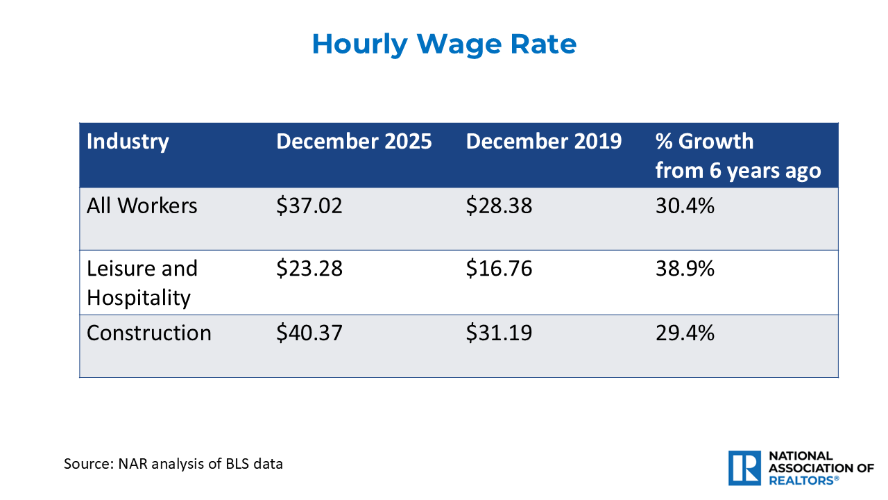 Wage growth is outpacing consumer price inflation by a small margin. It will be interesting to monitor wage growth in construction and leisure/hospitality (workers in restaurants and hotels, for example) in the coming months, since the southern border shutdown is more likely to affect these two sectors.