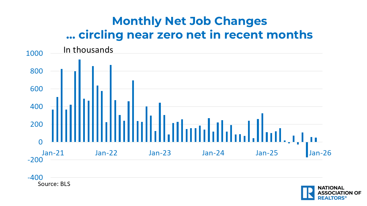 Overall, job growth is stalling but essentially at a record high. However, home sales are nowhere near a record high. Lower mortgage rates, faster income growth, and more housing supply will be needed to get home sales to move higher.