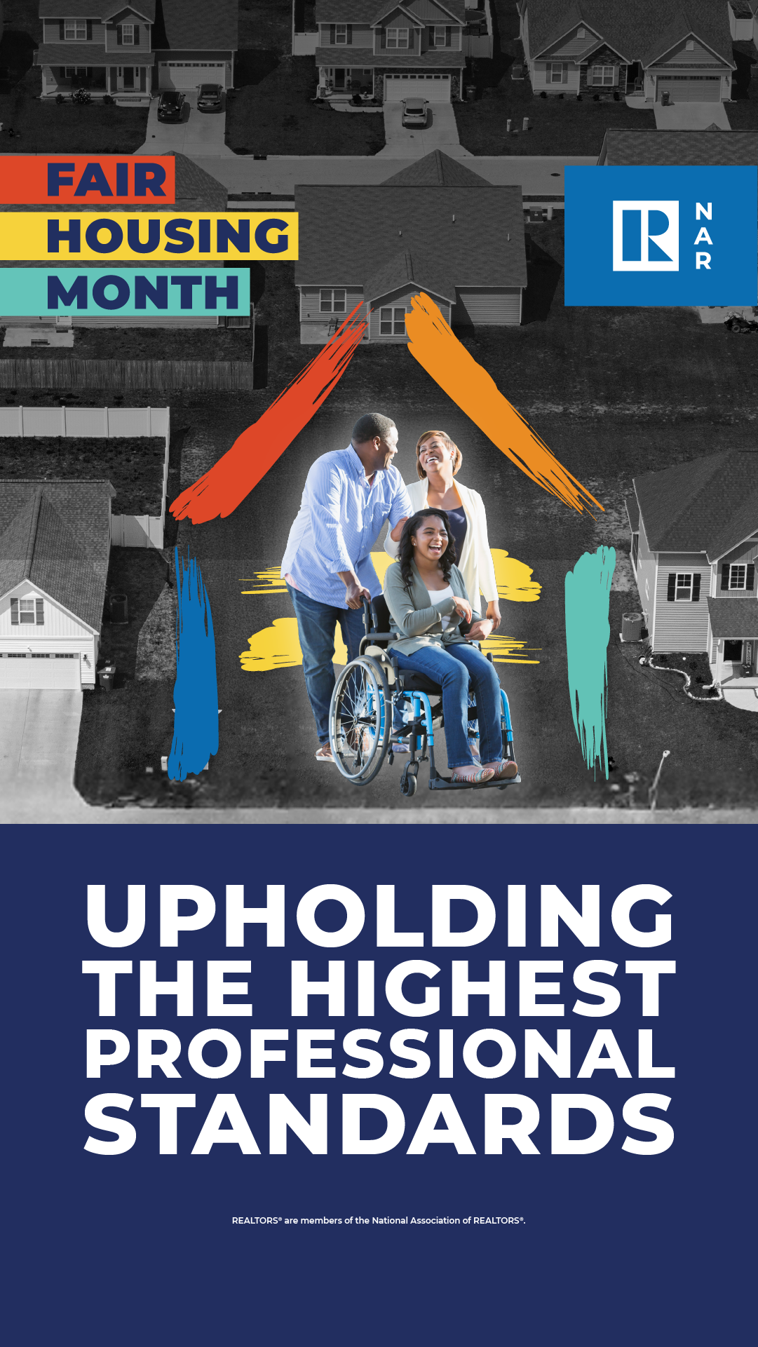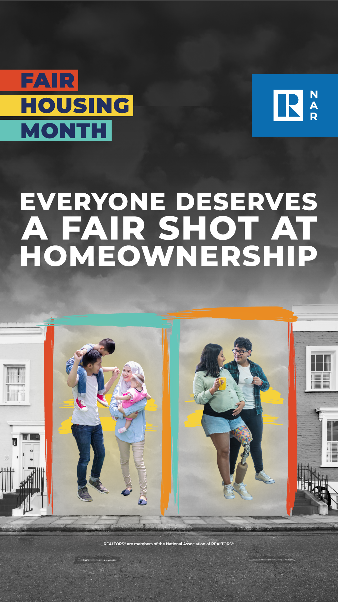 To support your commitment, NAR has created a Fair Housing Month poster you can use to promote fair housing in your business and community. You are encouraged to print and display or share the poster to demonstrate your commitment to equal opportunity in housing. It is available in 18 x 24 or 9 x 12 sizes.