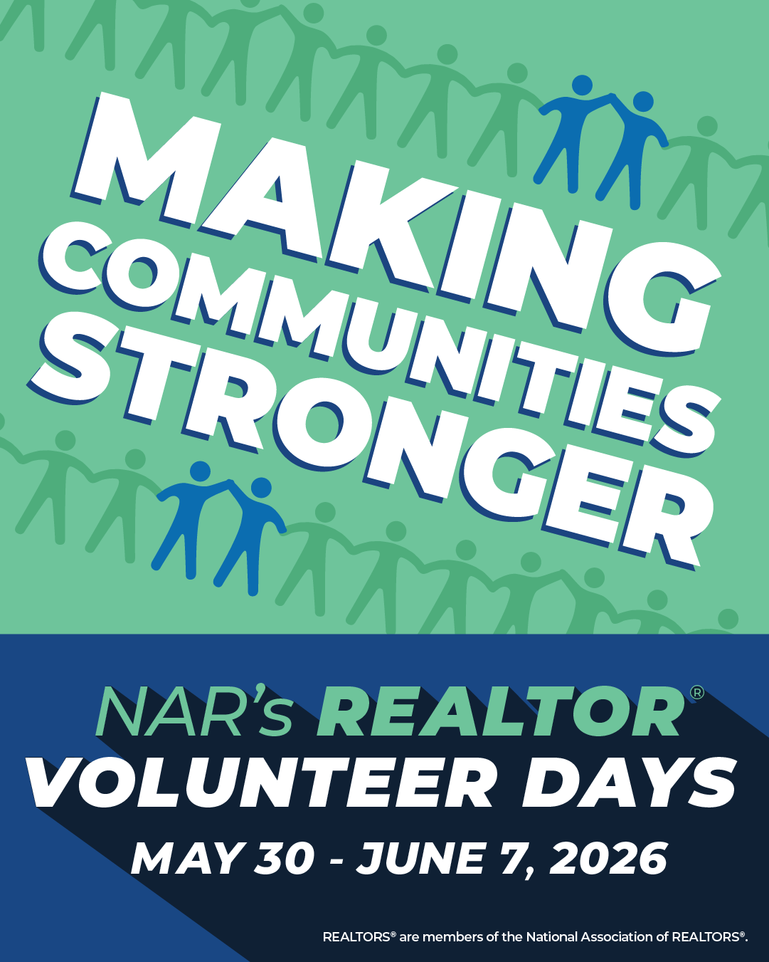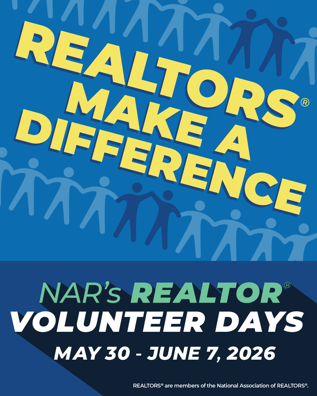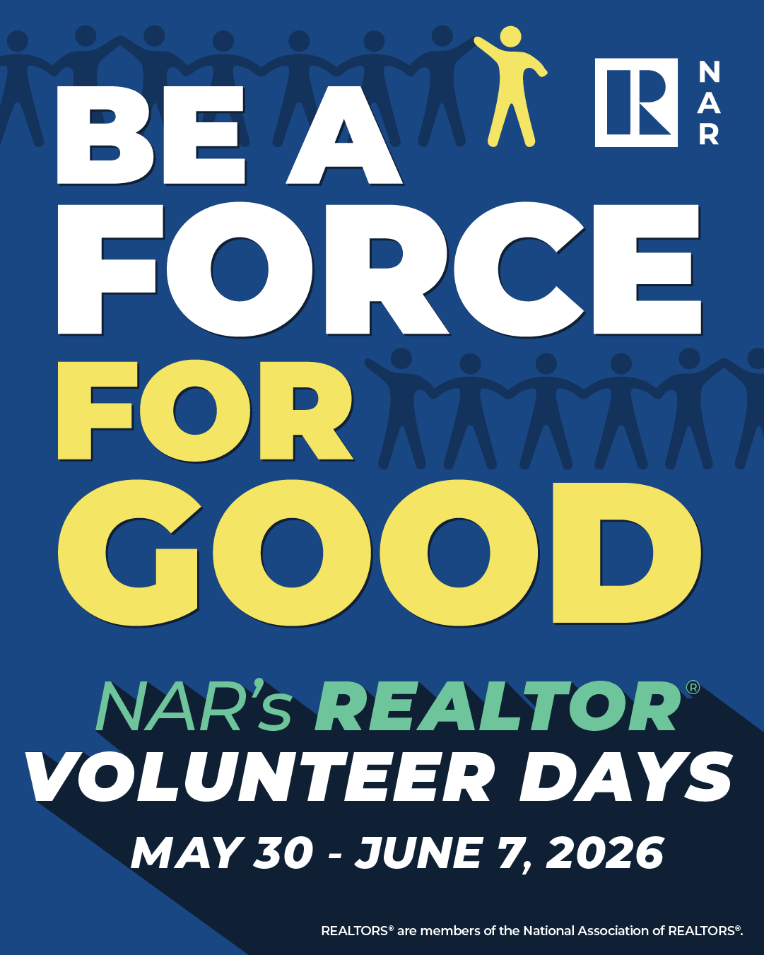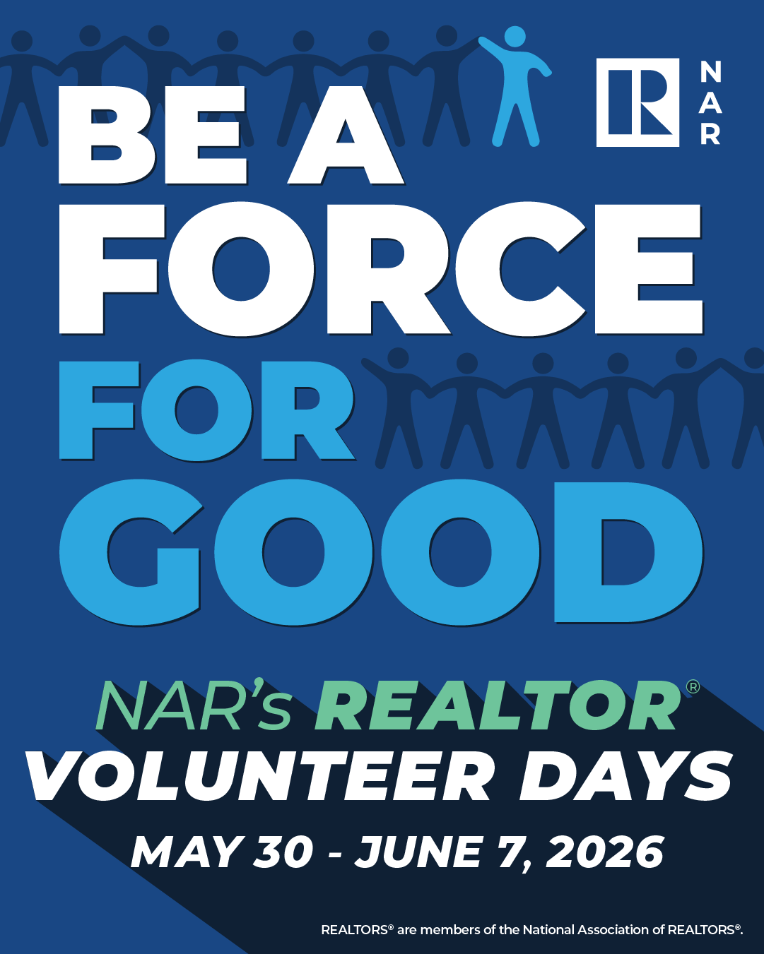NAR's 2026 REALTOR® Volunteer Days will take place May 30 – June 7, 2026. Marketing assets from the 2026 Volunteer Days toolkit are available for review below.